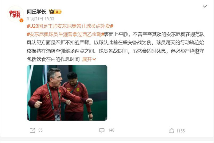 2026年U23男足亚洲杯时辰,“U23国足主帅拒接球员点外卖”陡然冲上热搜。主帅安东尼奥“铁腕策略”被网友狂赞:“终于有莳植敢管球员了!”可平缓下来一思,禁外卖就能支持中国足球? 怎么看这个问题?