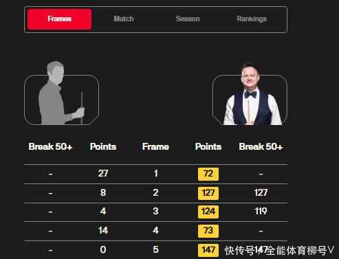 第三局,墨菲的紧要手感依旧十分火爆,他又轰出单杆119分,124-4浮松赢下,比分上风扩大到3-0。第四局,墨菲胜仗拿下,4-0获取4个赛点。第五局,墨菲轰出单杆满分147分,这亦然本赛季的第12杆满分147分,并以总比分5-0横扫晋级,冠军相王人备。
