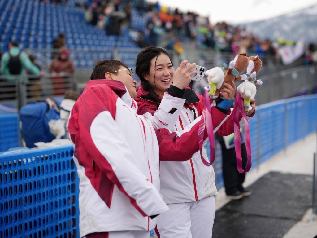 她的一又友也包括中国残奥峻岭滑雪队的队友们,“他们是很开畅的一群东谈主”。在今日的比赛中,她与冬残奥会“三朝元老”刘想彤先后拿了铜牌。一个在领奖的时分,另一个也留在授奖区域,见证彼此登上领奖台。