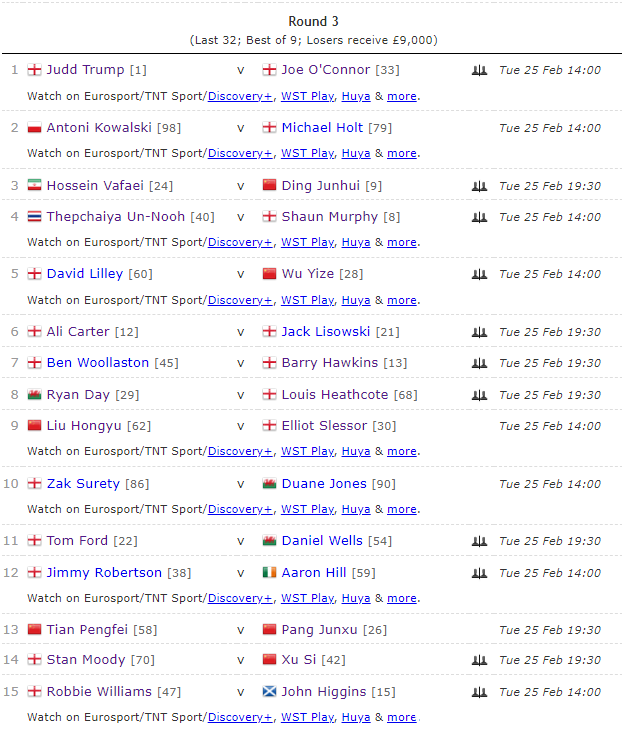 另外,徐想以5-3慑服外卡选手邹鹏飞、外卡选手周金豪以5-1横扫马来西亚选手林杉峰 、吴宜泽 以5-4慑服杰克逊-佩奇、周跃龙以以5-1横扫马纳萨文-佩马莱克。