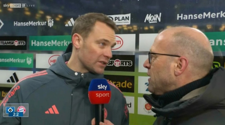 直播吧2月1日讯德甲第20轮,拜仁客场2-2战平汉堡遭逢王人集两轮不堪。本场比赛出现了屡次争议判罚,赛后诺伊尔吸收德国太空体育采访时还与记者PatrickWasserziehr发生了小遏制。